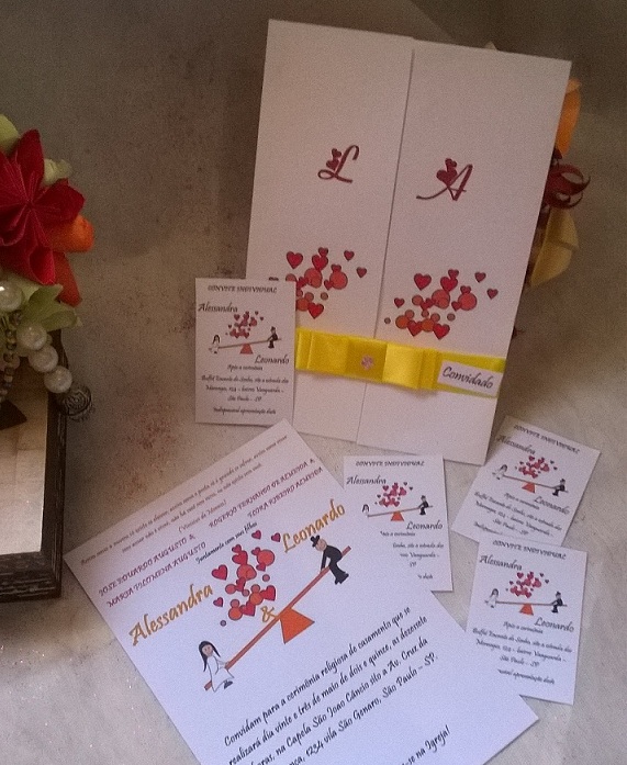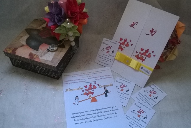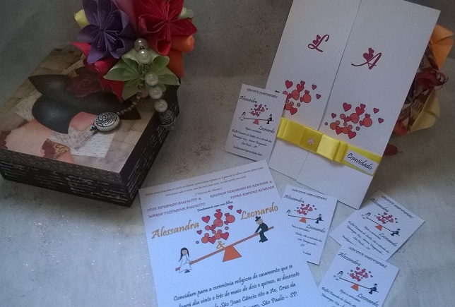 Convites e envelopes elaborados manualmente um a um (em vários tipos de papel, entre e contato para mudar caso queira, trabalhamos com vários tipos e gramaturas ), completos com impressão jato de tinta de alta qualidade, entregues ao cliente embalados individualmente em plástico transparente e acomodados em uma linda caixa, venda em quantidade mínima de 100 unidades do mesmo produto, e entregues pelos correios pelo serviço de SEDEX, onde o frete será por conta do consumidor, que deverá calcula-lo ao finalizar a compra do produto disponível no site.