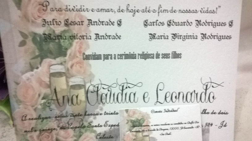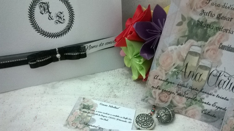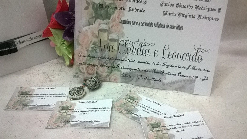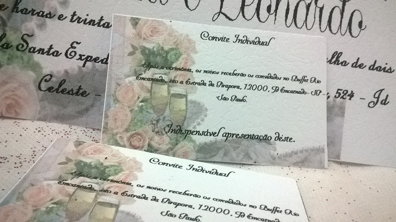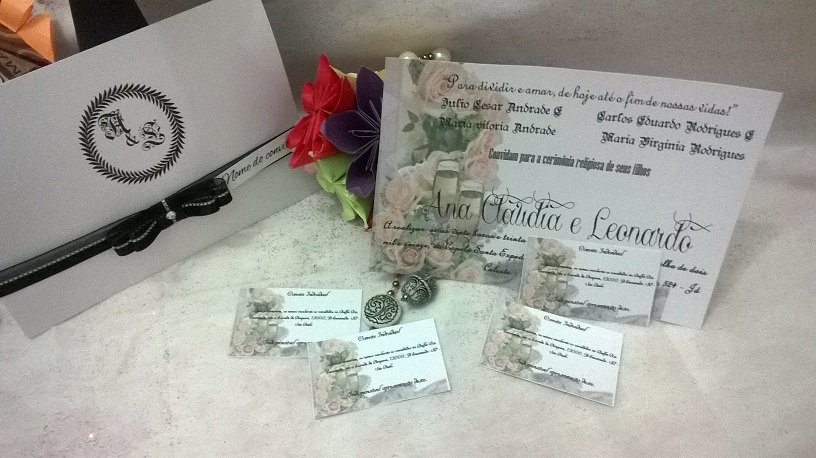 Convites e envelopes elaborados manualmente um a um (em vários tipos de papel, entre e contato para mudar caso queira, trabalhamos com vários tipos e gramaturas ), completos com impressão jato de tinta de alta qualidade, entregues ao cliente embalados individualmente em plástico transparente e acomodados em uma linda caixa, venda em quantidade mínima de 100 unidades do mesmo produto, e entregues pelos correios pelo serviço de SEDEX, onde o frete será por conta do consumidor, que deverá calcula-lo ao finalizar a compra do produto disponível no site.